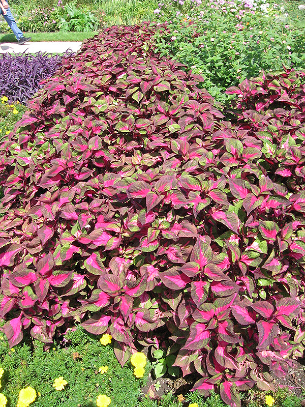 Magilla Perilla will grow to be about 3 feet tall at maturity, with a spread of 18 inches. When grown in masses or used as a bedding plant, individual plants should be spaced approximately 16 inches apart. Although it's not a true annual, this fast-growing plant can be expected to behave as an annual in our climate if left outdoors over the winter, usually needing replacement the following year. As such, gardeners should take into consideration that it will perform differently than it would in its native habitat.