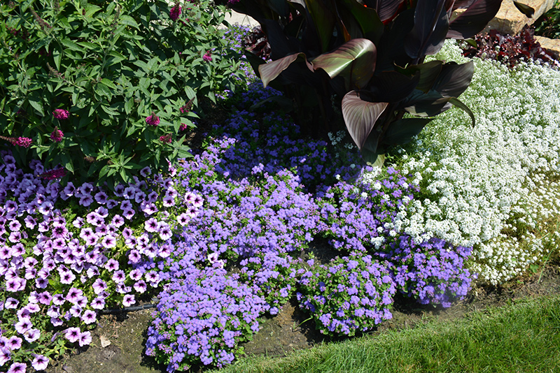 A wonderful heat tolerant, mounded series of self-cleaning, continuous reblooming plants; presents fluffy blue, button-like flowers with dark green foliage; a beautiful addition to garden beds, borders, window boxes and patio containers