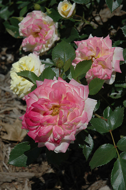Music Box Rose makes a fine choice for the outdoor landscape, but it is also well-suited for use in outdoor pots and containers. With its upright habit of growth, it is best suited for use as a 'thriller' in the 'spiller-thriller-filler' container combination; plant it near the center of the pot, surrounded by smaller plants and those that spill over the edges. It is even sizeable enough that it can be grown alone in a suitable container. Note that when grown in a container, it may not perform exactly as indicated on the tag - this is to be expected. Also note that when growing plants in outdoor containers and baskets, they may require more frequent waterings than they would in the yard or garden.
