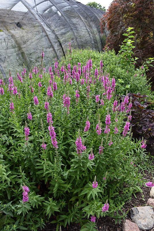 Morden's Gleam Loosestrife will grow to be about 24 inches tall at maturity extending to 5 feet tall with the flowers, with a spread of 24 inches. When grown in masses or used as a bedding plant, individual plants should be spaced approximately 18 inches apart. Its foliage tends to remain dense right to the ground, not requiring facer plants in front. It grows at a fast rate, and under ideal conditions can be expected to live for approximately 5 years. As an herbaceous perennial, this plant will usually die back to the crown each winter, and will regrow from the base each spring. Be careful not to disturb the crown in late winter when it may not be readily seen!