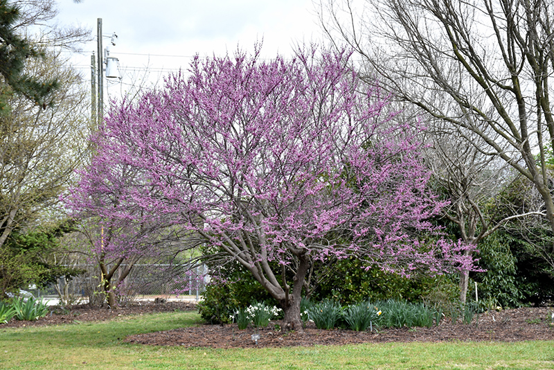 A spectacular spring-blooming accent tree with beautiful reddish pink flowers in early spring, followed by papery, ovate gray-green leaves; adaptable to a variety of soil conditions; older dark brown bark exfoliates to reveal orangish inner bark