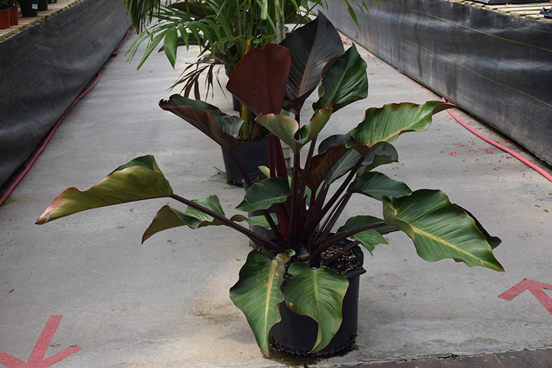 Prismacolor™ Rojo Congo Philodendron's attractive glossy oval leaves emerge coppery-bronze, turning dark green in color throughout the year on a plant with an upright spreading habit of growth. The red stems are very effective and add to the plant's interest.