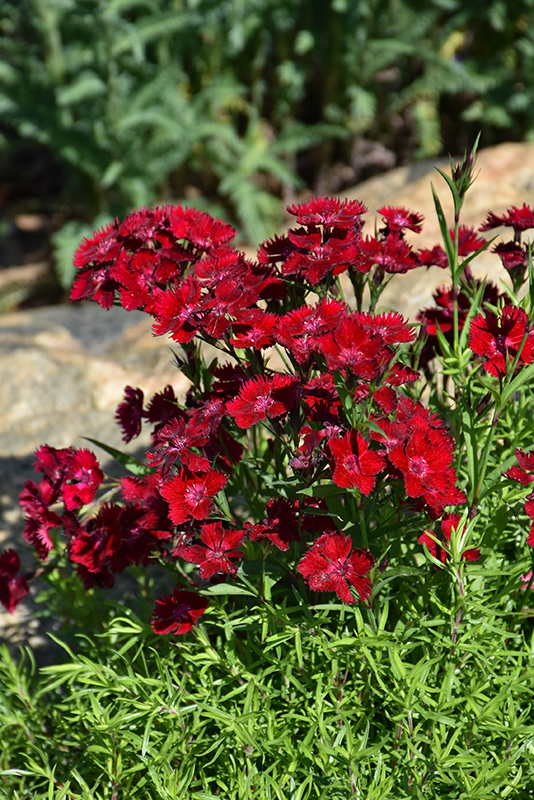 Rockin'™ Red Pinks is smothered in stunning fragrant red frilly flowers with pink eyes at the ends of the stems from late spring to mid fall. The flowers are excellent for cutting. Its glossy narrow leaves remain dark green in color throughout the year.