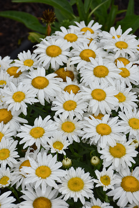 An outstanding Shasta daisy producing stunning white blooms with golden centers; features uniform height and habit, and excellent disease resistance; beautiful when massed in the garden or border; blooms throughout the summer