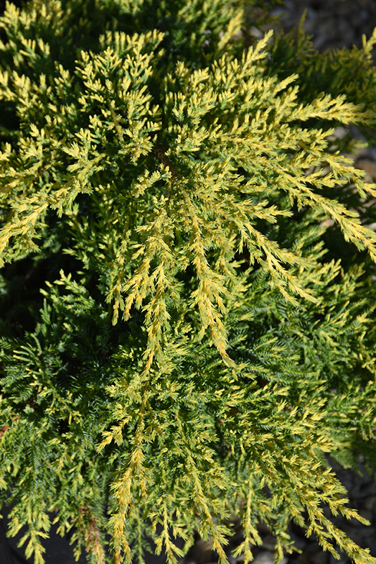 A richly colorful wide-spreading evergreen shrub featuring attractive blue-green foliage that emerges with a yellowish tint on pendulous branch tips, an extremely effective combination; very adaptable, makes a wonderful groundcover for a splash of color